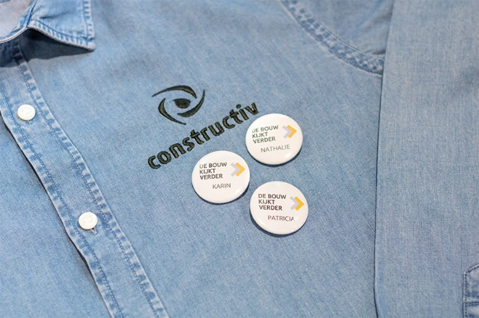 Bij Constructiv houden ze van de bouw en dat willen ze graag laten zien! We drukten hoodies, Borduurden jeans hemden en maakten enkele buttons.